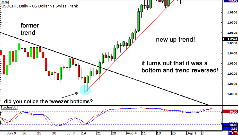Sebelum kita melanjutkan, apakah anda melihat tweezer bottom yang terbentuk pada lower low yang kedua?