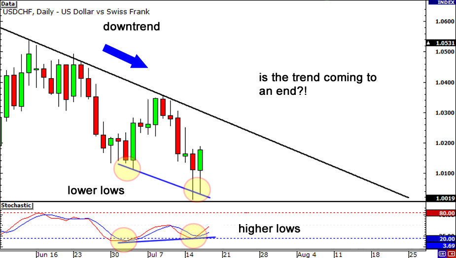 Harga telah membentuk rendah yang lebih rendah, dan stokastik (indikator yang kami gunakan) menunjukkan rendah yang lebih tinggi.
