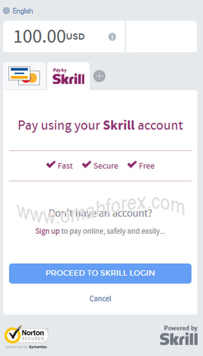 - Klik tab “Pay by Skrill” jika anda ingin menggunakan dana yang tersedia pada kaun Skrill anda, lalu klik tombol “Process to Skrill Login”