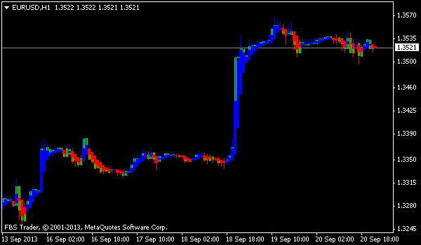 Cleon Heiken Ashi mq4 adalah indikator MT4 gratis, indikator ini menampilkan sinyal pada grafik bar yaitu grafik berwarna merah dan biru secara default, indikator ini mirip dengan indikator heiken ashi. Berikut screenshoot indikator tersebut: