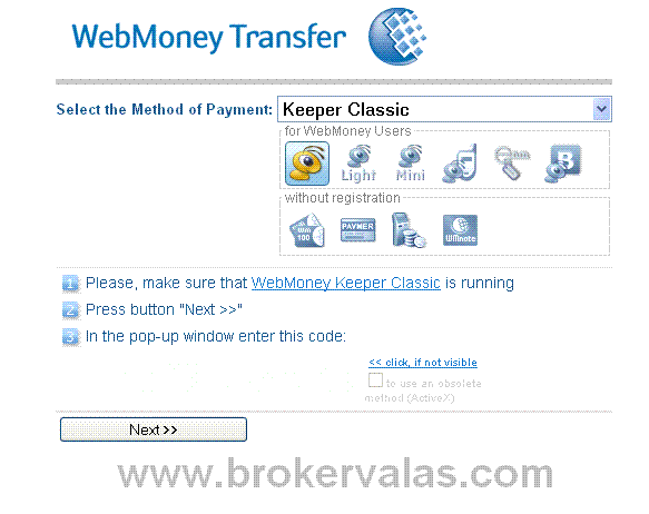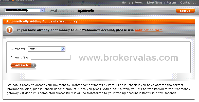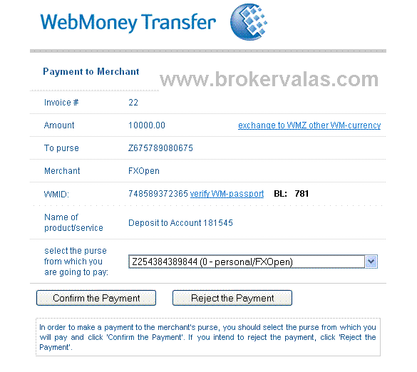 Sistem WebMoney menyediakan transfer uang aman antara penggunanya. Untuk mentransfer dana ke account FXOpen Anda menggunakan WebMoney, Anda perlu menentukan Account webmoney penerima dan jumlah dana yang ingin Anda transfer ke account Anda, dan dana akan segera tersedia untuk Anda gunakan. Untuk deposit/dana melalui webmoney anda terlebih dahulu harus memiliki account Webmoney, jika belum memiliki daftar disini, seteleh itu silahkan ikuti langkah-langkah berikut ini: