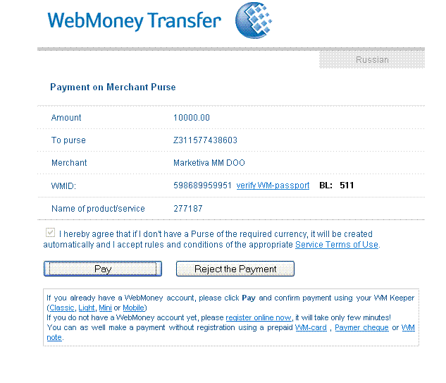 - isi form tersebut dengan currency = WMZ, dan Amount= Jumlah dana yang akan anda setor, kemudian klik tombol “Add funds”, maka anda akan diarahkan ke halaman berikutnya seperti tampak pada gambar berikut: