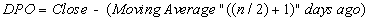Detrended Price Oscillator dibandingkan harga penutupan dari moving average sebelumnya, menghilangkan semua cycle yang lebih panjang dari Moving Average.