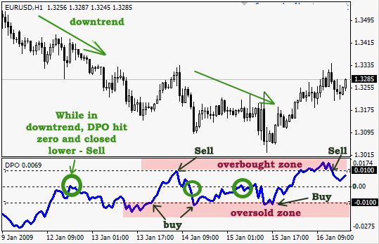 membeli (Buy) ketika DPO mencapai angka nol dari atas atau dips di bawah nol untuk sementara dan kemudian naik di atas nol.