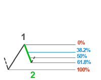 Diketahui Fibonacci menggunakan rasio (38,2%, 50%, 61,8%, 161,8% dan sebagainya) kita dapat memprediksi seberapa panjang gelombang, kedalaman koreksi, dan sebagainya