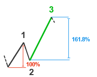 Untuk melakukannya kita kalikan ketinggian gelombang 1 dengan 161,8% dan proyeksi hasil dari akhir gelombang satu.
