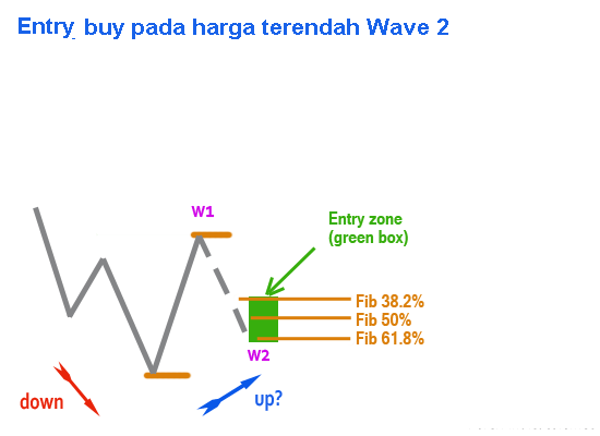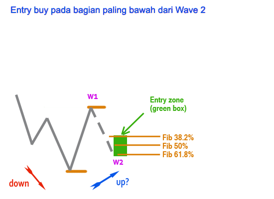 Setelah anda melakuakan Buy, pasang stop loss di bawah awal Wave 1.