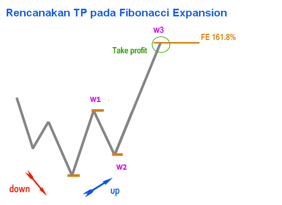 - Menggunakan 61,8% Fibonacci Expansion sebagai TP akhir