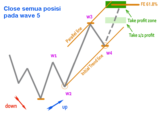 Wave 5 adalah titik terakhir untuk mengambil keuntungan dan tutup semua posisi yang tersisa.