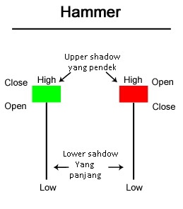 Hammer adalah pola candlestick yang sangat bermanfaat untuk membantu pedagang visual melihat di mana dukungan dan permintaan berada. Setelah downtrend, Hammer memberikan sinya ke pedagang bahwa kdowntrend bisa berakhir dan bahwa posisi sell harus ditutup untuk mengambil keuntungan.