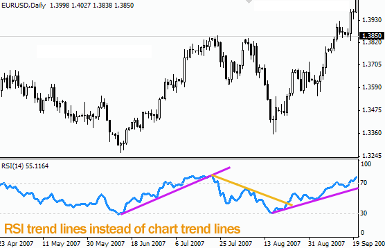 The RSI indicator has another useful feature: Traders use RSI to describe trend lines. While the trend line of the RSI remains intact, it confirms that the trend remains intact.